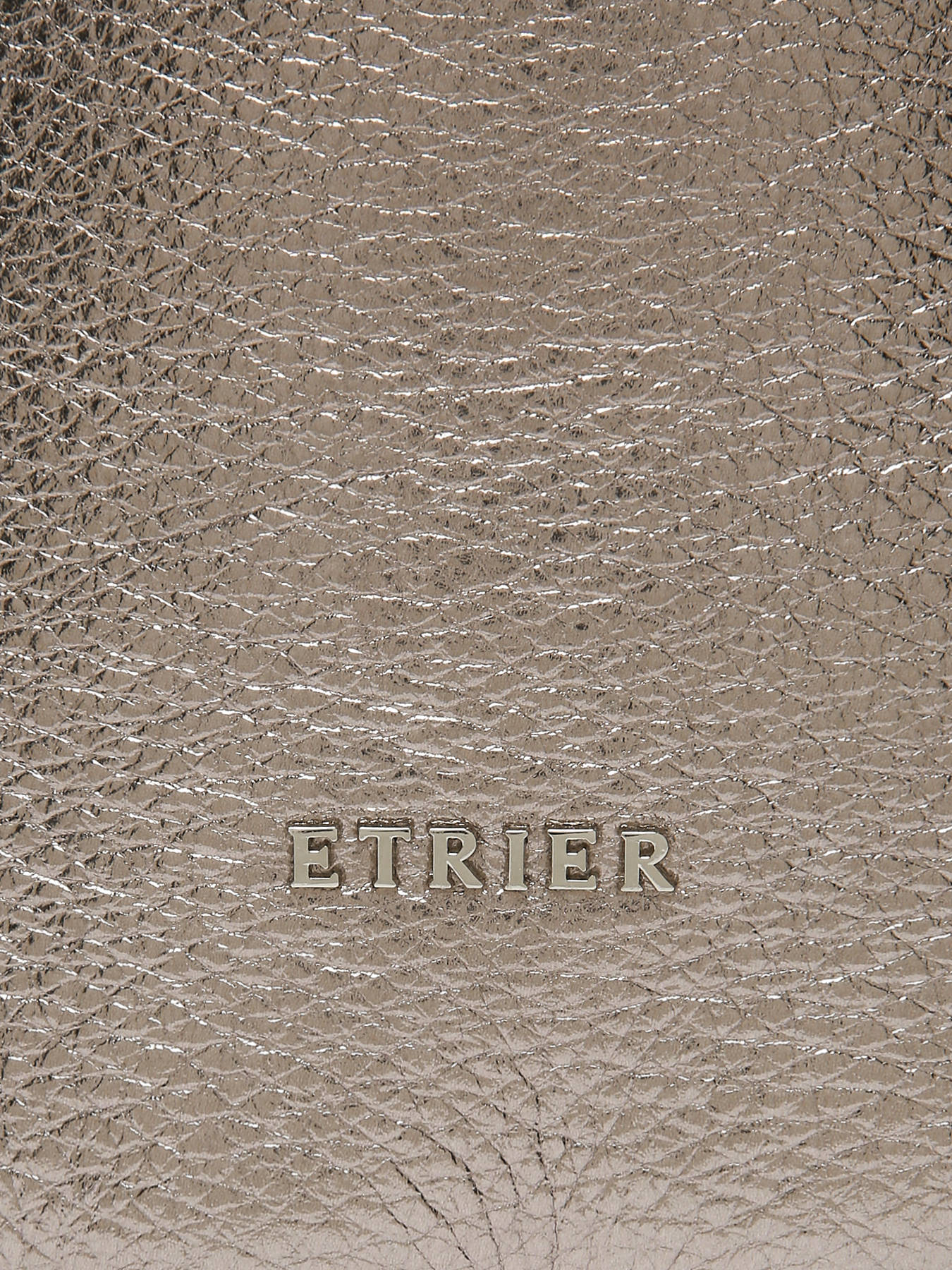 The ETRIER shoulder bag from the JOLLY line combines modernity and boldness with its iridescent cowhide leather that catches the light. Its drawstring closure and removable pouch, secured to the bottom of the bag with a snap, add a practical and original touch to this bucket bag. The adjustable and removable shoulder strap, along with the fixed handle, offer various carrying options: on the shoulder, crossbody, or by hand. Inside the pouch, there is a slip pocket and a zipped pocket, perfect for organizing your essentials. The JOLLY line embodies the ""Highlander Cowboy"" spirit with a wild yet refined style, ideal for a bright and daring winter. The stirrup detail on the strap adds an elegant signature to this unique model.